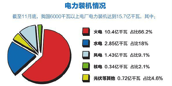 非化石能源裝機方面,截至11月底,我國水電裝機達到2.854億千瓦,同比增長(cháng)3.5%,核電裝機達到3352萬(wàn)千瓦,同比增長(cháng)24.3%,風(fēng)電裝機達到1.43億千瓦,同比增長(cháng)25.8%。